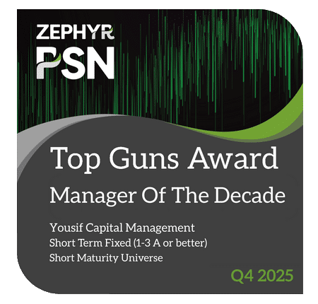 Yousif Capital Management earned the PSN Top Guns 6 Star award in multiple categories, as well as the Manager of the Decade awards for its Short Term Fixed (1-3 A or better) strategy. The Manager of the Decade awards are based on the 10-year period ending December 31, 2024, and December 31, 2025. The PSN Top Guns award list, published by Zephyr, highlights top-performing separately managed account strategies, distilled through rigorous performance-based selection criteria.
